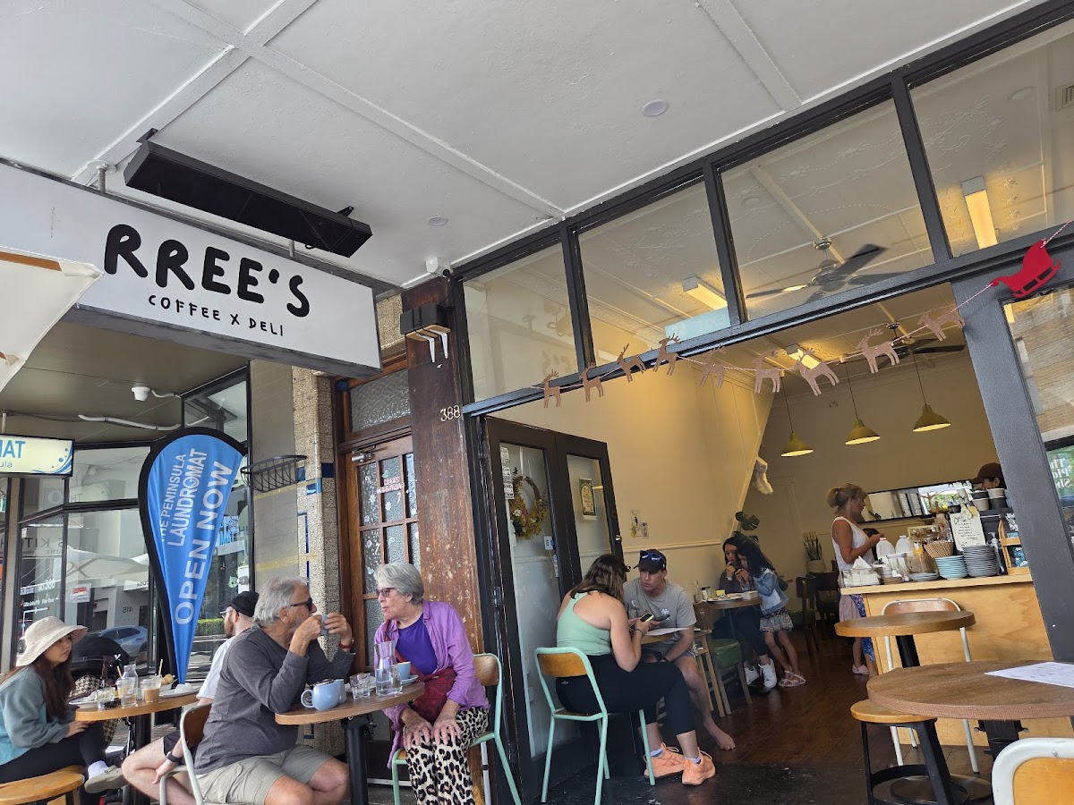 At RREE’s, the coffee options run the spectrum from classic flat whites to more playful iced beverages like cold brew and matcha lattes. Regulars lean into the quality of the espresso—smooth, well-executed, and paired seamlessly with their baked goods. The house-baked muffins, still warm, and the standout soufflé draw repeat visits, speaking to a kitchen that values technique and comfort in equal measure.